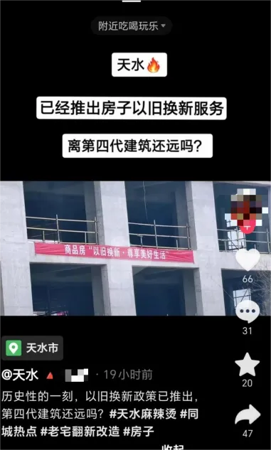 今年4月,天水市公安局秦州分局网安部门巡查发现,某网络平台有人发布视频称“天水已经推出房子以旧换新服务,离第四代建筑还远吗?”,并回复网民“具体一个项目一个政策”。随后,迅速引发了社会热议。
